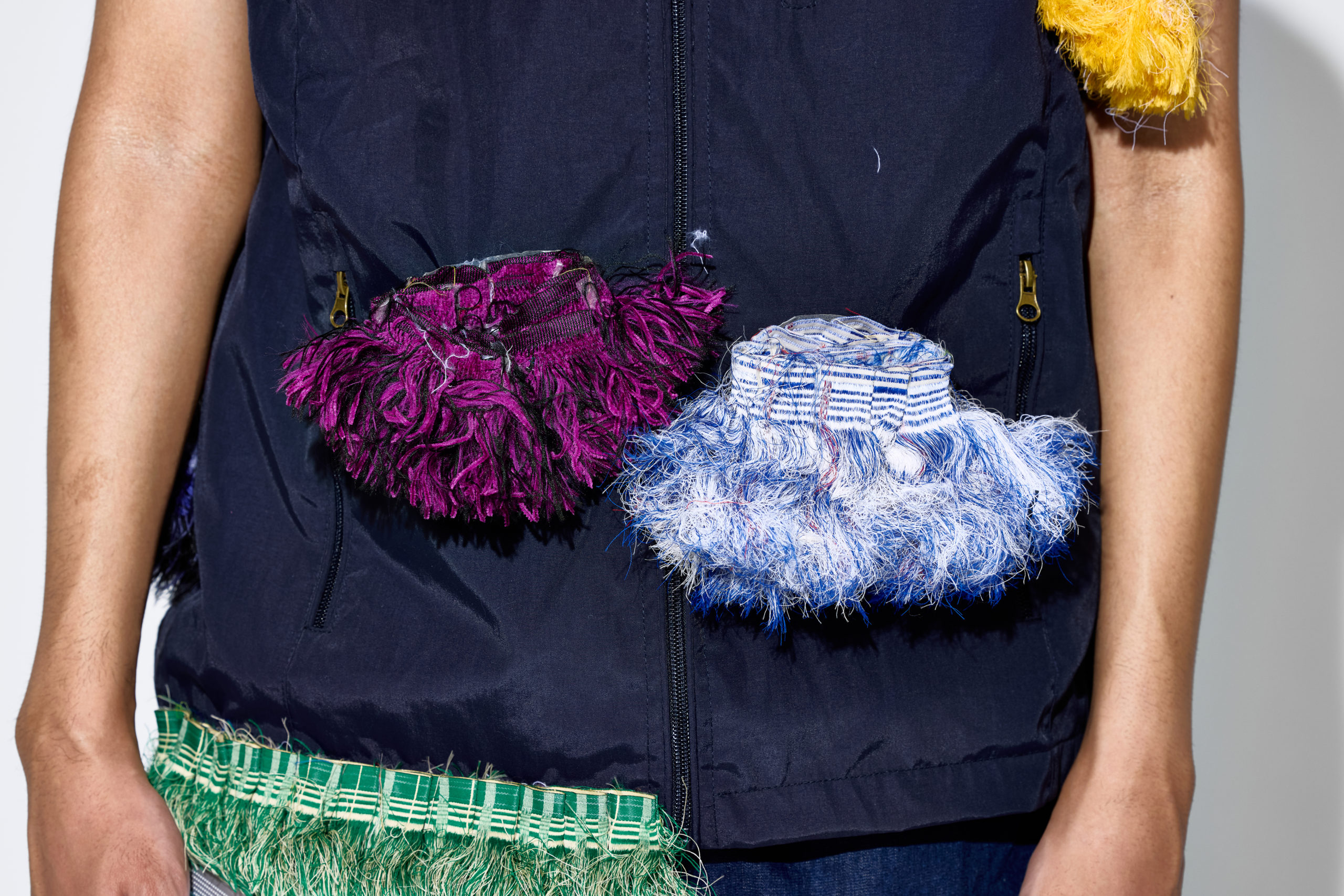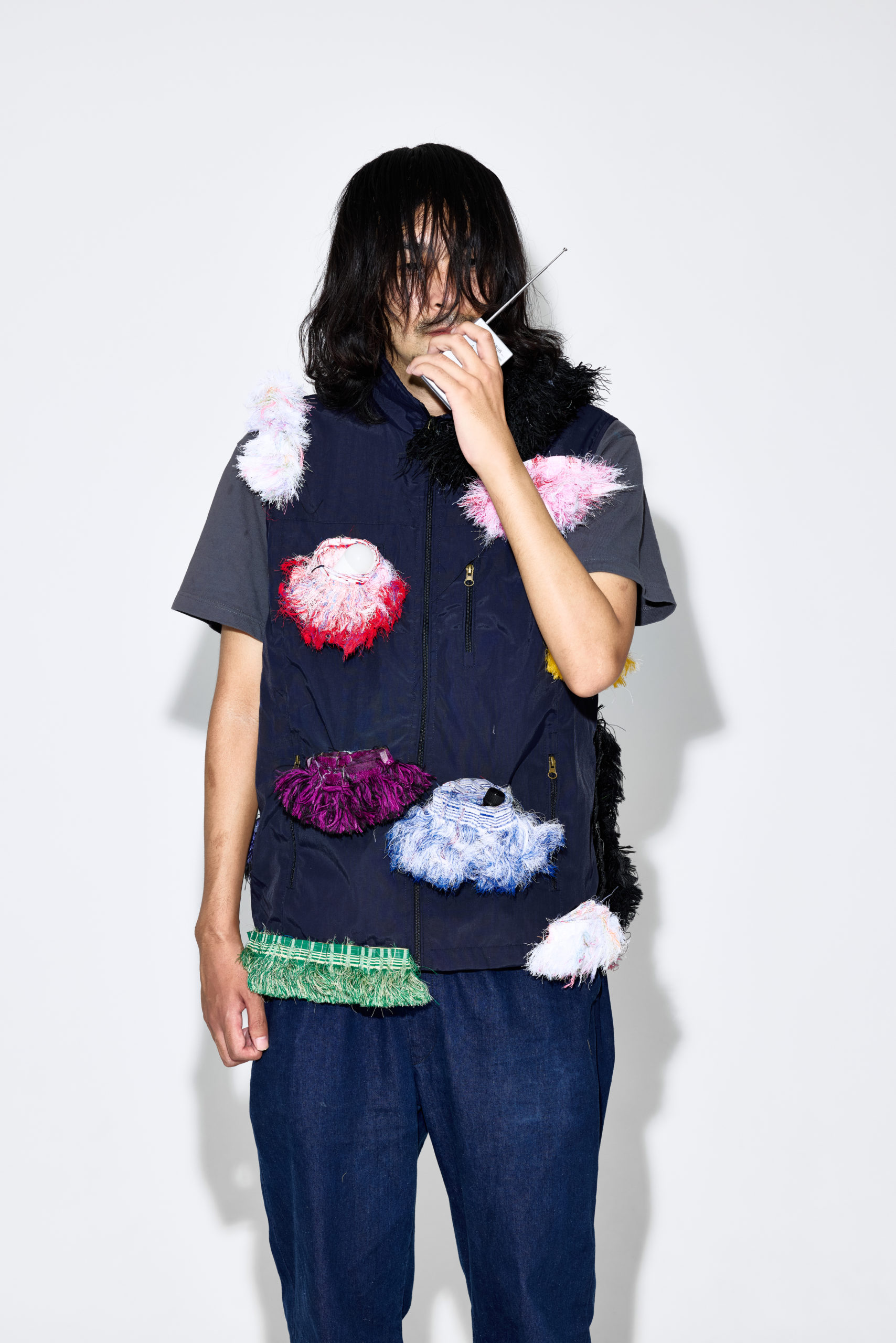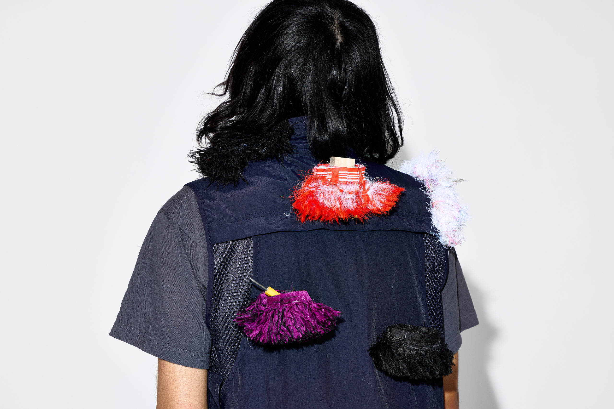 Woven labels are beautiful. Beautiful patterns are created by meticulously weaving each thin thread into textiles, enriching our everyday lives. However, behind this beauty lies a presence that exists before it is woven. Even though it is the same thread, some are processed and not made into a finished product, but are discarded. Just as it is said that objects have a soul, we believe that a soul resides in the process before they become a product, and we have conceived these as ghosts. Name Ghosts are ghosts that use off-cuts from woven labels as pockets to store things that are no longer used. While sad, they hope that someone will see them, and they exude the kindness and beauty that only name ghosts can produce, and they are born today, walking somewhere, and disappearing somewhere.