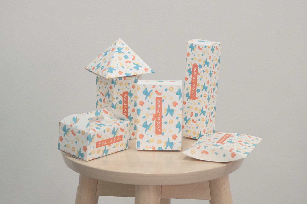きりんのスタディはデザインの試験的プロジェクトです。パッケージデザインとイラストの作成を目的に数種類のパッケージと楽くなるようなイラストを制作しました。